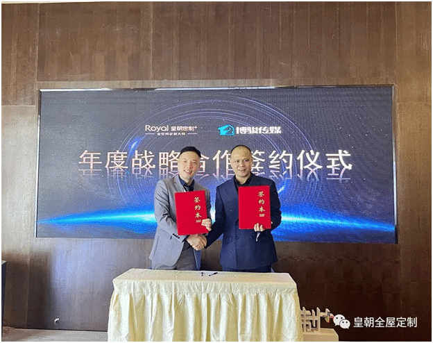 博骏文化传媒副总蒙辉老先生与皇朝定制老总陈卓老先生签署合作合同
